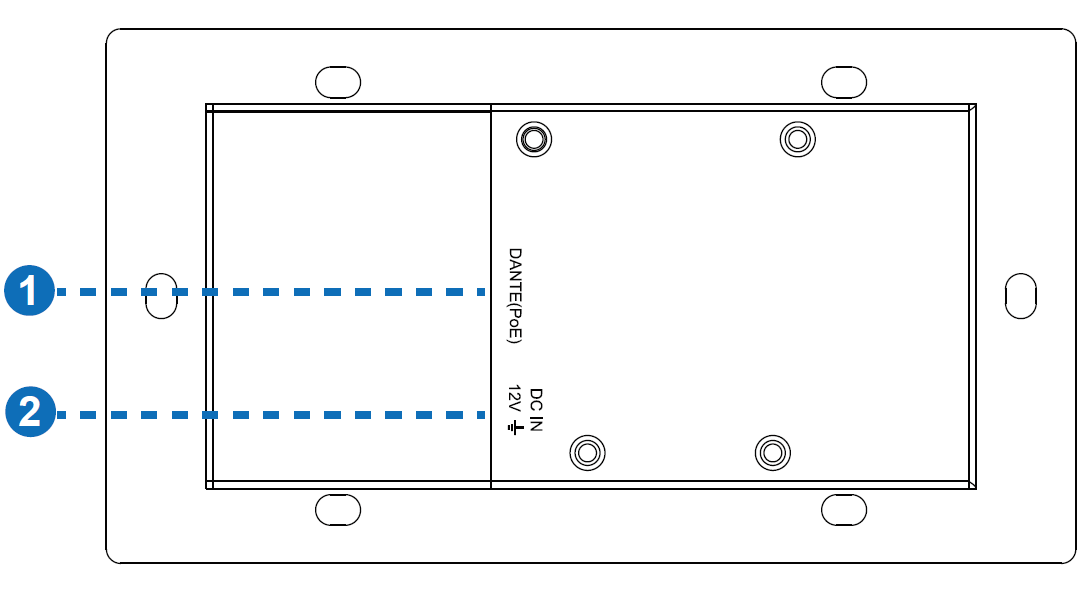 1x DANTE [RJ45 コネクタ、PoE] [デジタル オーディオ入力/出力、PCM 2CH 44.1K-96KHz 16/24 ビット]